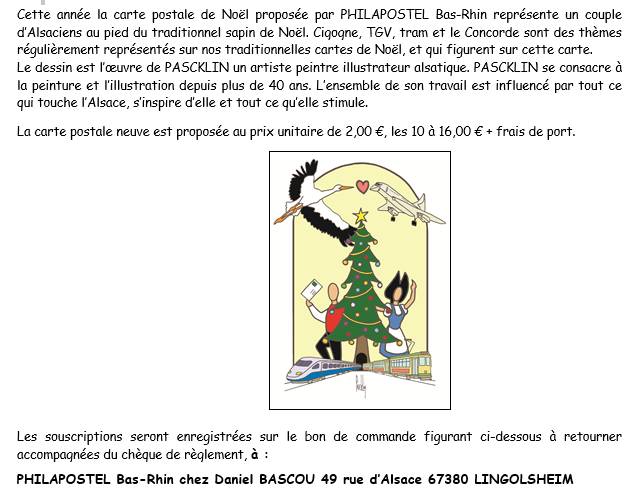 Carte postale Noël 2025 avec Philapostel Bas-Rhin02 Décembre 2025