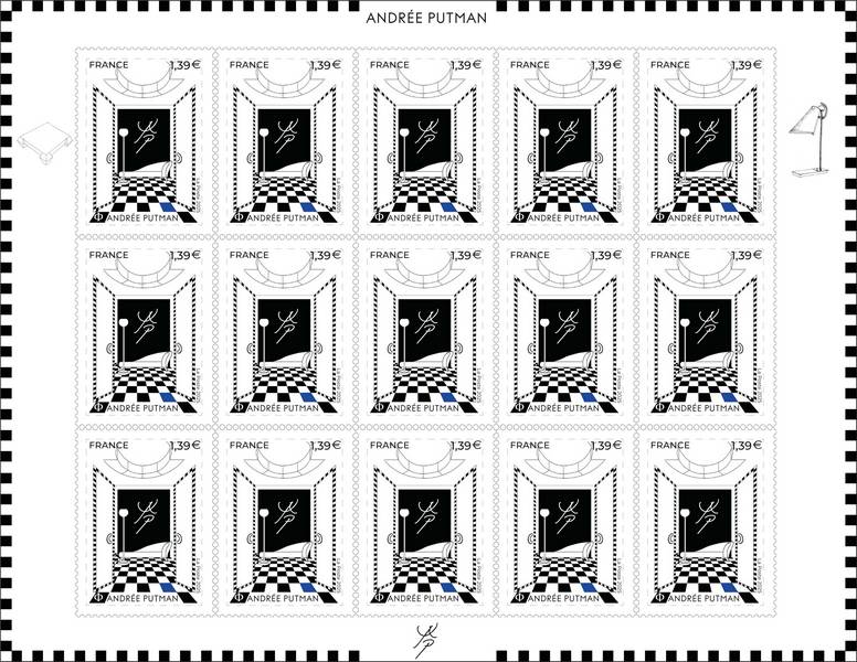 La Poste émet un timbre illustré par des éléments de l’univers inimitable d’Andrée PUTMAN, architecte d'intérieur et designer de renommée internationale, à l’occasion du centenaire de sa naissance.